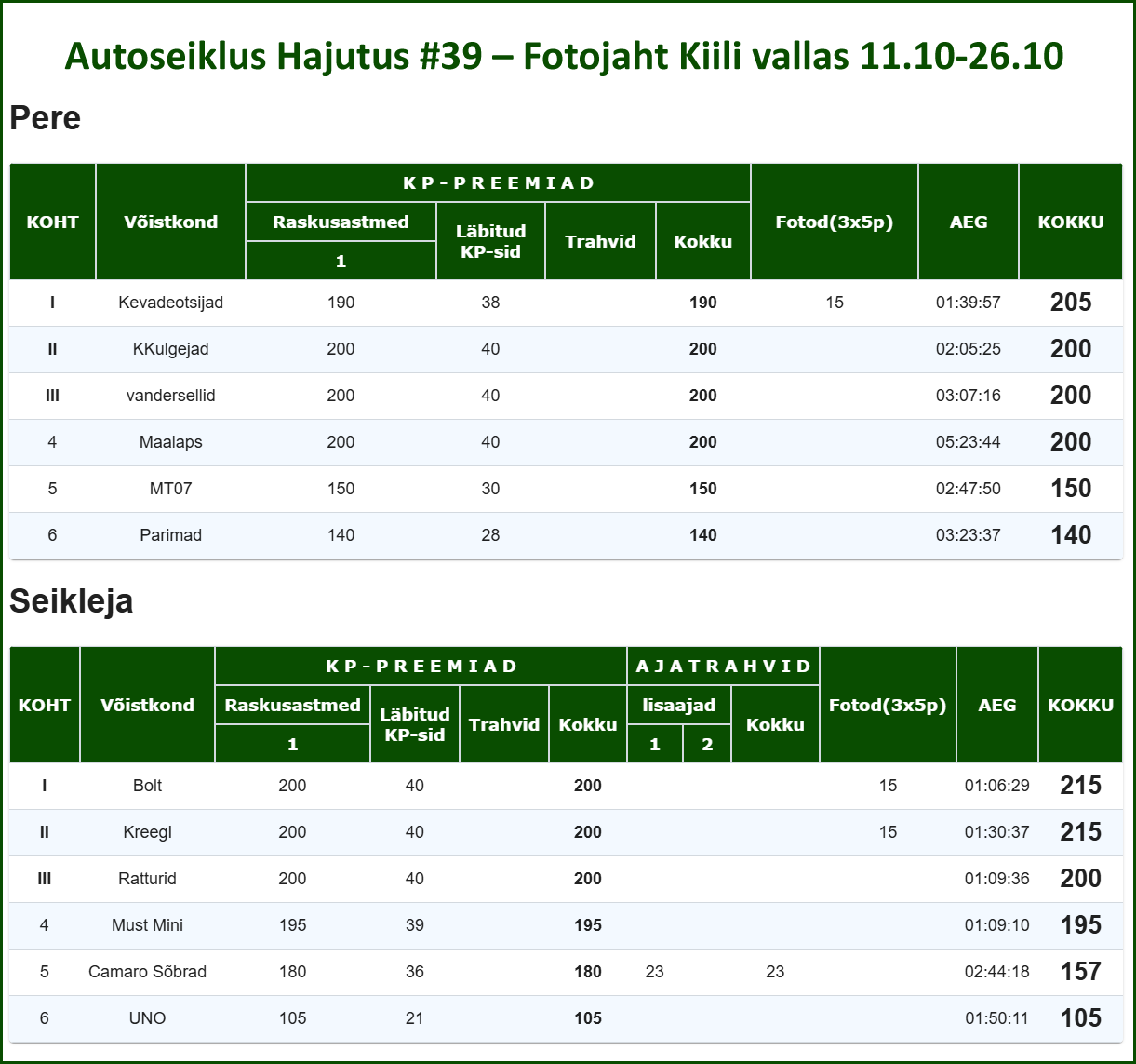 Tulemusi ja seiklejate teekondi saab näha siit: https://nutilogi.web.app/Hajutus39