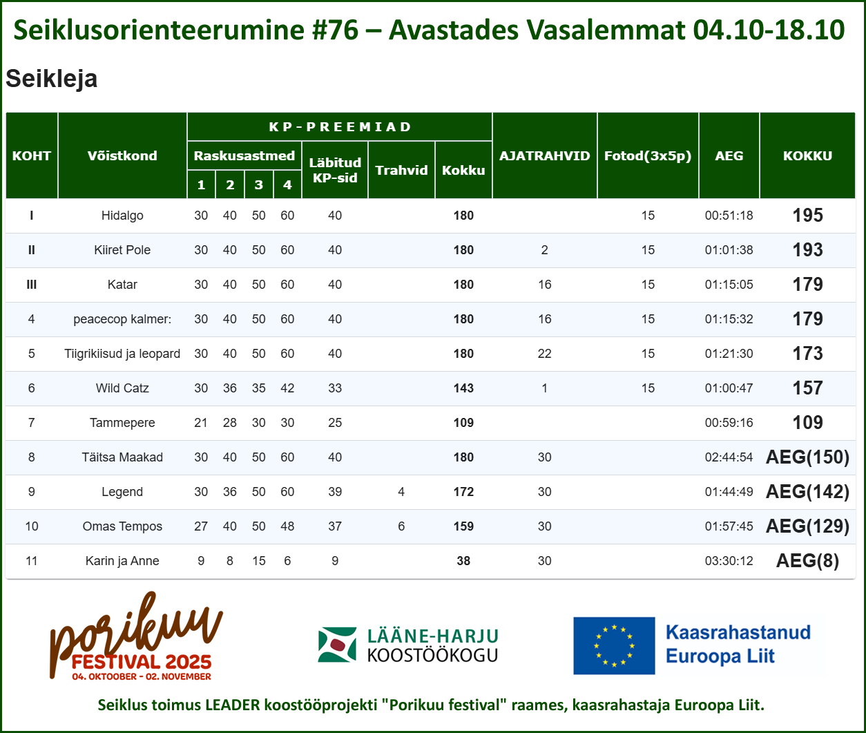 Seiklusministeeriumi seikluste sarja “Avastades” järjekordne seiklus avanes Porikuu festivali raames 4. oktoobril Vasalemma alevikus. Seiklusel sai tulemuse kirja 45 tiimi ja seiklus pakkus rõõmu rohkem kui 140-le seiklejale. Rajalt jõudis minuni väga palju toredaid pilte rõõmsate emotsioonidega.