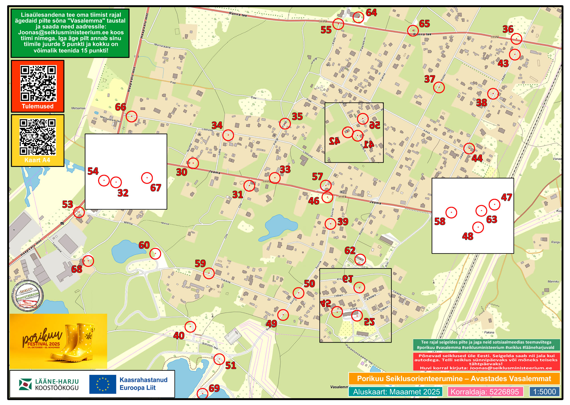 Seiklusrajal oli 40 punkti ja need asusid kõik Vasalemma alevikus. Kõikide punktide läbimisel kujunes raja pikkuseks 8-9 kilomeetrit. Parema ettekujutuse saamiseks jagan seikluskaarti ja seikluskaart nägi välja selline: