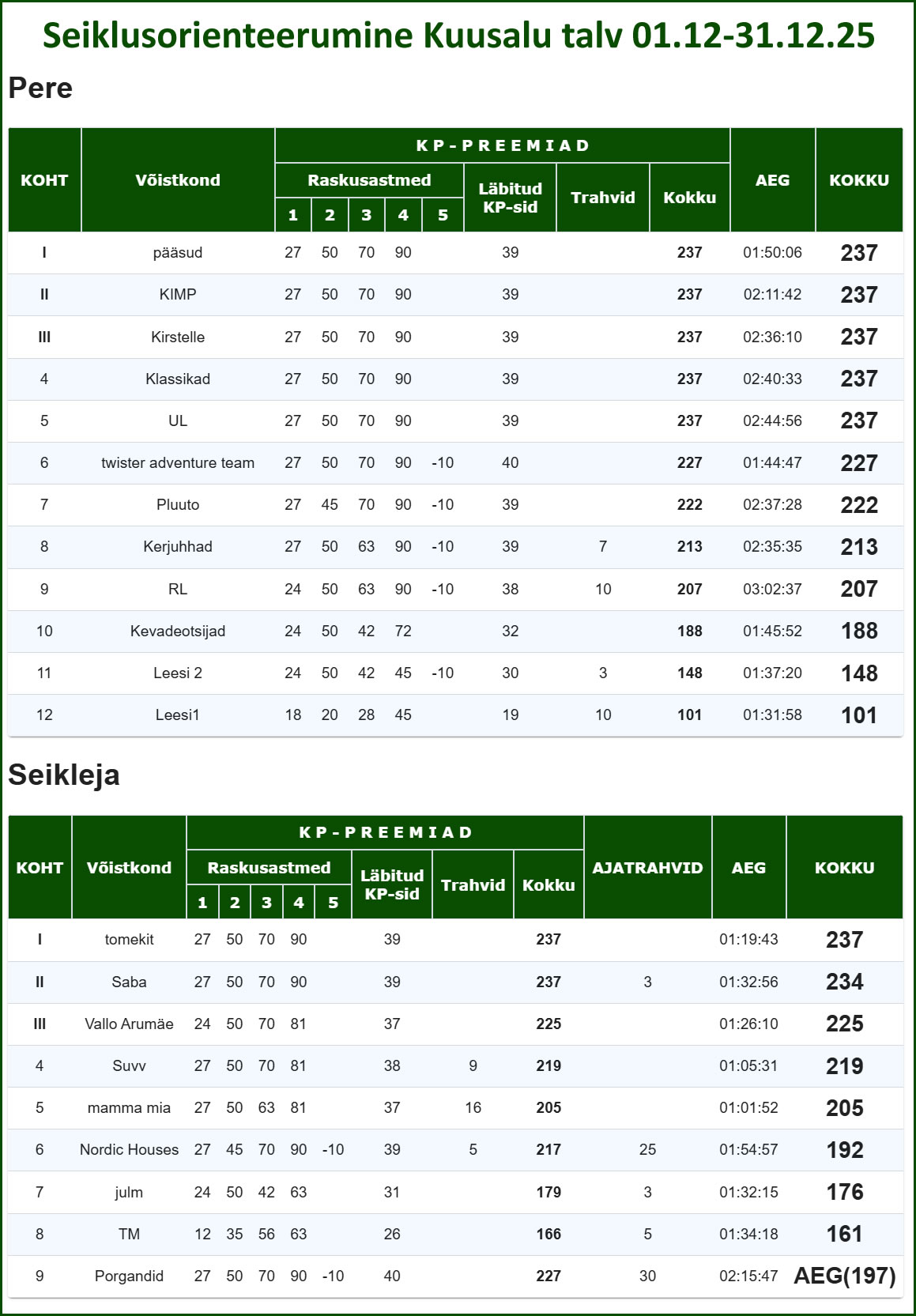 Kuusalu seikluse tulemused